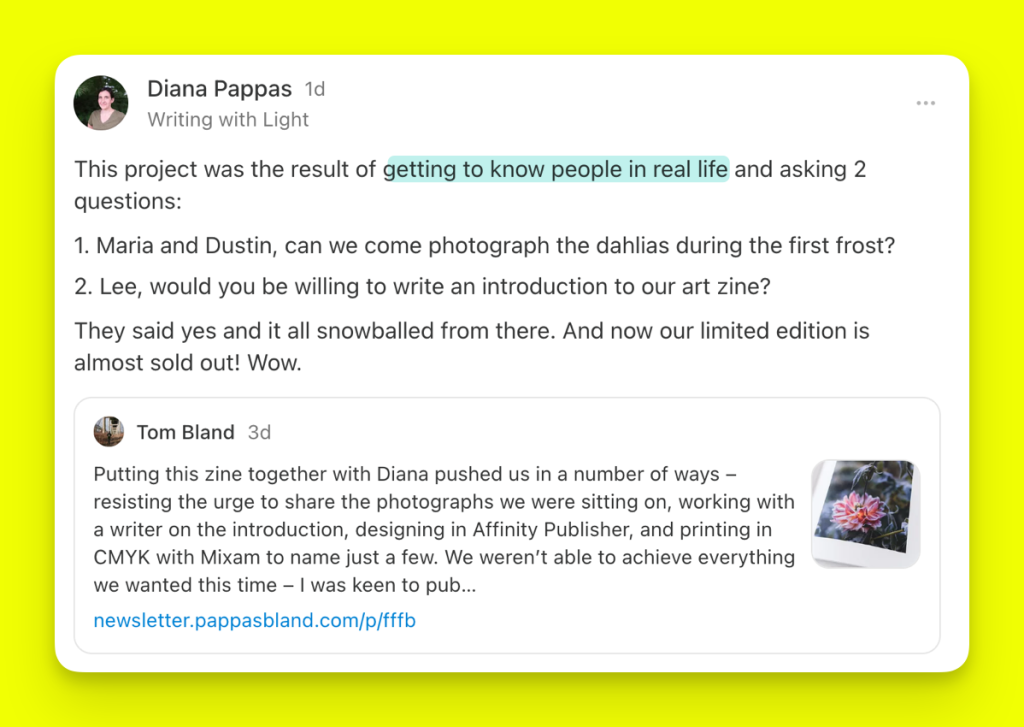 This is how you dig deeper with the people who subscribe to your work, by offering side-quests and see who shows up.