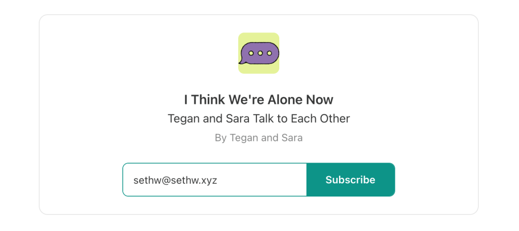 💥 Still on the fence about using Substack for your band’s newsletter? Check out ‘I Think We’re Alone Now,’ from Tegan and Sara.
