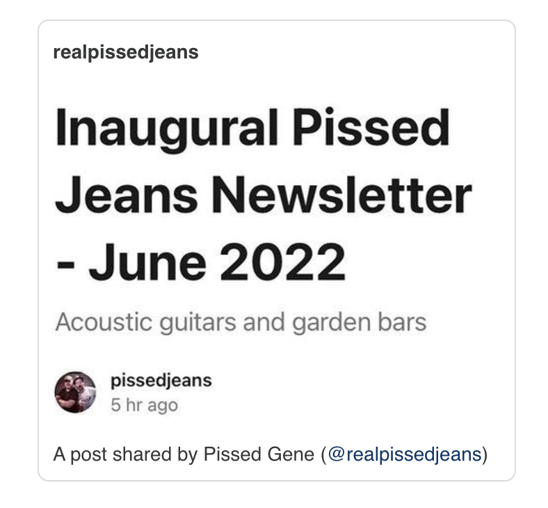 Sign up for Substack, and tell people to sign up. In this case, Pissed Jeans put up this Instagram post, said “link in bio,” and now they have an email list.