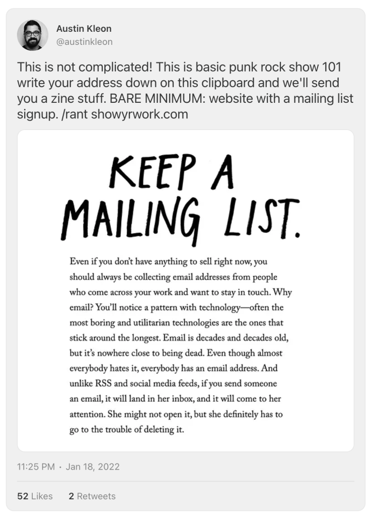 So when the time comes to release that video, they know they’ll be able to reach 100% of those people because that’s how email works.