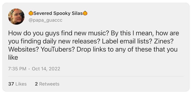 Interesting thread here, and interesting to see how people in this thread don’t find new music.