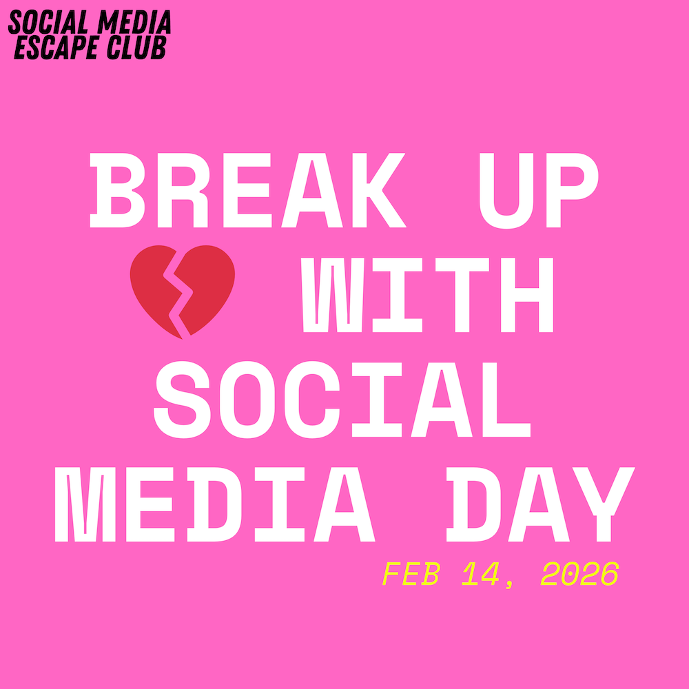 I created BREAK UP 💔 WITH SOCIAL MEDIA DAY. On February 14, 2026 we’re going gather on Zoom to delete at least one social media app from our phone.
