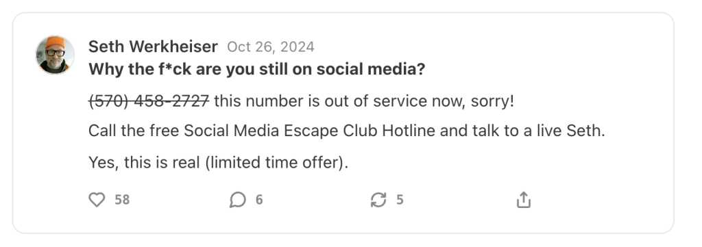 For me, Substack is the place to be right now, and it’s built around the concept of having an email list. Call it social media if you want, but my email list will serve me for the next several years, even if this place goes out of business.
