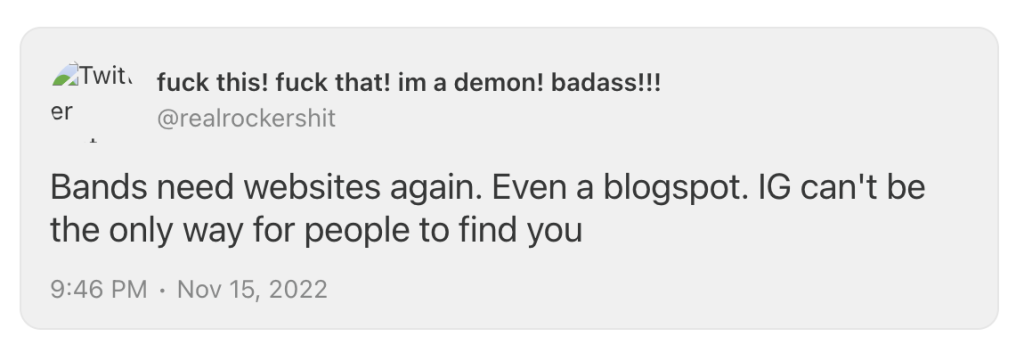 If you’ve got a piece of wisdom from your journey that you’d like to share with almost 250 artists and industry folk that signed up for an email newsletter about email marketing in the heavy metal world (thank you), hit reply, leave a comment, send me an email, or stop by the subscribe chat, and maybe I’ll put it in an upcoming email.
