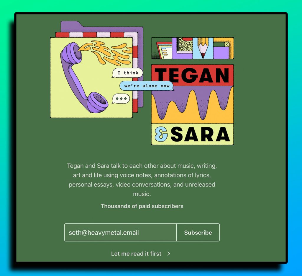 Your art is still magical to your fans, so spend some time crafting exactly what your fans are signing up for, like Tegan and Sara‘s newsletter: