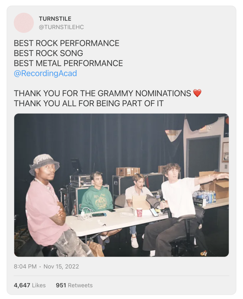Even though I lost my glasses and ended up paying over $350 for new ones so I could drive home I wish nothing but three wins for Turnstile.