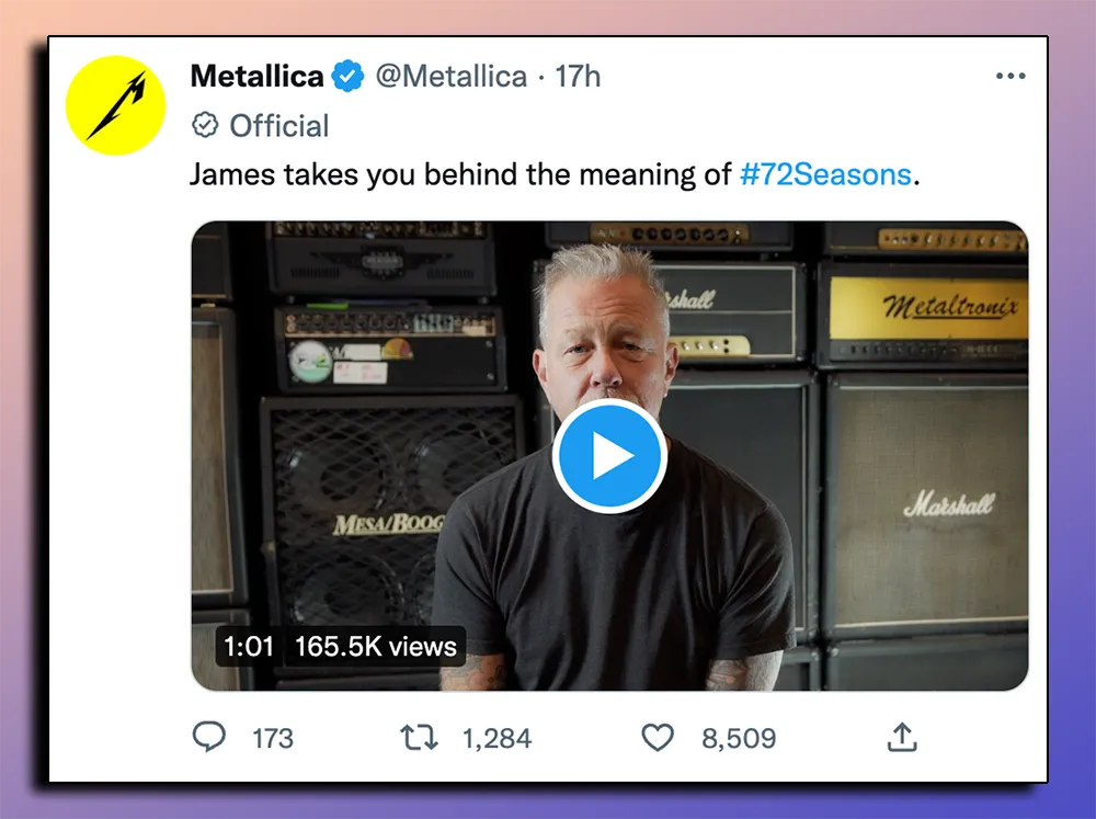 The other is a native video upload of James Hetfield talking about the meaning of the new ‘72 Seasons’ album title:
