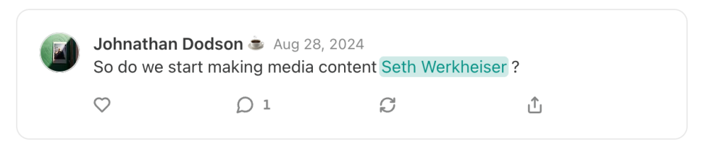Today Substack rolled out Substack Originals to go along with their new media tab in the app, and I got this question from Johnathan Dodson, which I answer above.