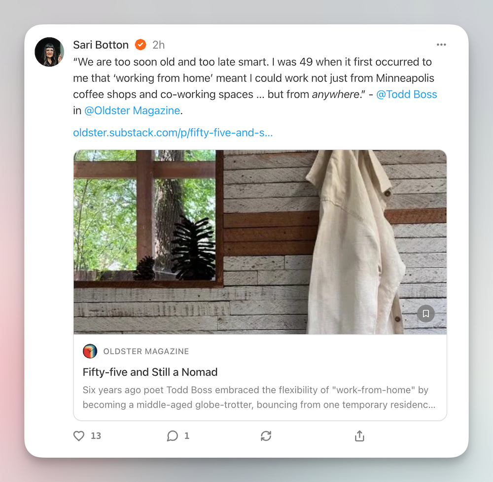 ✅ If you interviewed someone, get out of the way and put them front and center, the way Sari Botton of Oldster Magazine does here: