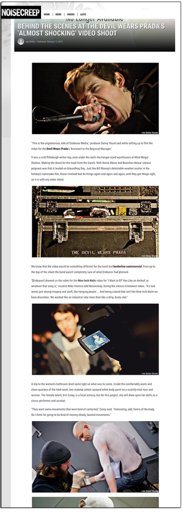 Back in 2010 when I was running Noisecreep for AOL Music, we worked with The Devil Wears Prada to promote their upcoming video ‘Assistant to the Regional Manager,’ with this post ‘Behind the Scenes at the Devil Wears Prada’s ‘Almost Shocking’ Video Shoot.’