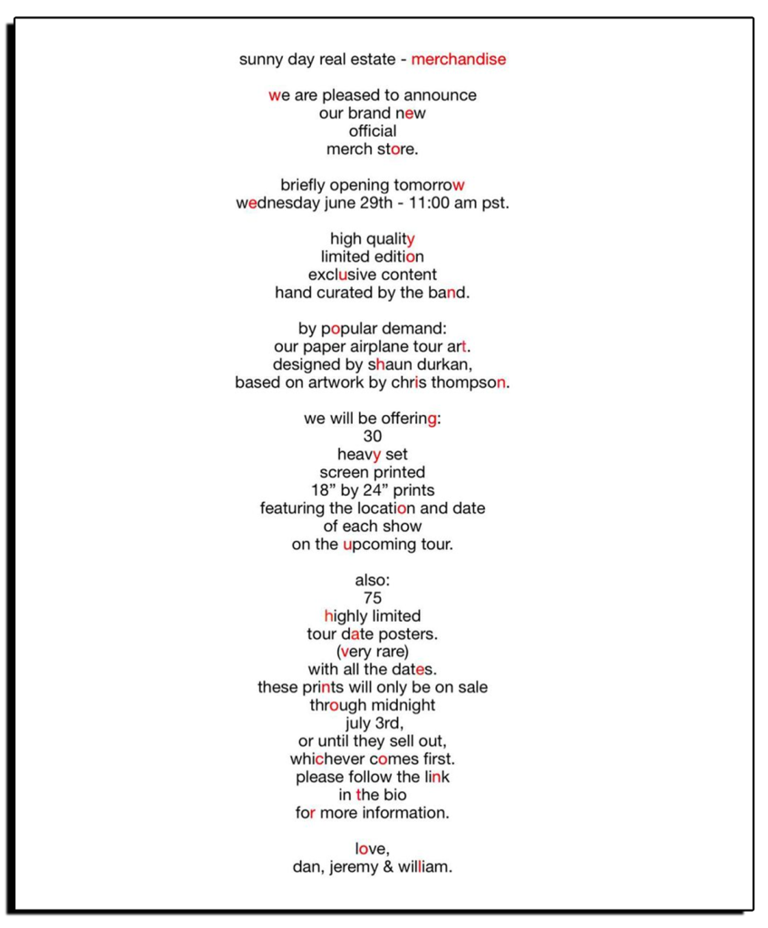 While Sunny Day Real Estate may not be heavy metal, I saw them post recently and felt their announcement process could serve as a good lesson.